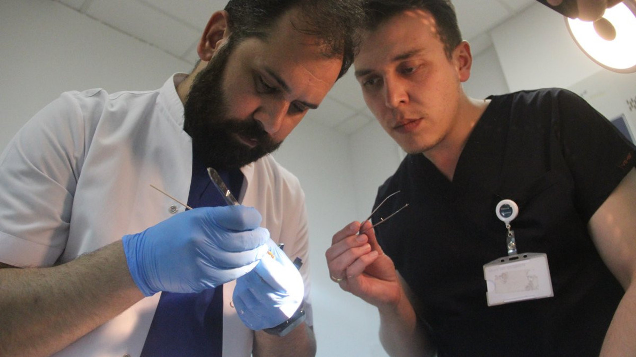 Pembe kırmızı yanaklı su kaplumbağalarının gözünde oluşan irinin ve enfeksiyonun cerrahi müdahale gerektirebileceğini vurgulayan Yalçın, "Bu hayvanlar kış uykusuna yatarlar. Su ısısı 22 derecenin altına düştüğünde yavaş yavaş hareketlerinde azalır, gözleri kapanır ve bir nevi kış uykusuna kendilerini hazırlıyorlar. Kış uykusuna yatan hayvanın uykudan uyanması için de bir prosedür gerektiriyor. Su ısısının yavaş yavaş artırılıp 22 derecenin üzerine çıkartılıp sabitlenmesi gerekiyor. Normal bakım şartlarında da yaklaşık 27 derece ısısında tutulması gerekiyor. Tabii bunların hepsi bir süreç. Bakıcıların bu süreç hakkında bilinçlenmesi gerekiyor. Kaplumbağanın gözlerini kapanması çok korkulacak bir durum değil ancak gözde çok fazla enfeksiyon ve irin oluşursa bu tarz durumlarda cerrahi müdahale gerekebiliyor. Çok komplike olmamış durumlarda küçük tedavilerle biz durumu toplayabiliyoruz. Bize şu an gelen hastamızda bakım ortamıyla ilgili bir durum var. Suyun aşırı kirli olması, kış uykusu geçiş dönemi olması hayvanı etkiler. Özellikle hayvan sahipleri çok dikkat etmezse su ısısı düştüğünde hayvan kış geldi zannederek gözlerini kapatıp uyuşuk bir moda geçiş yapabiliyor" dedi.