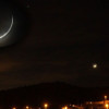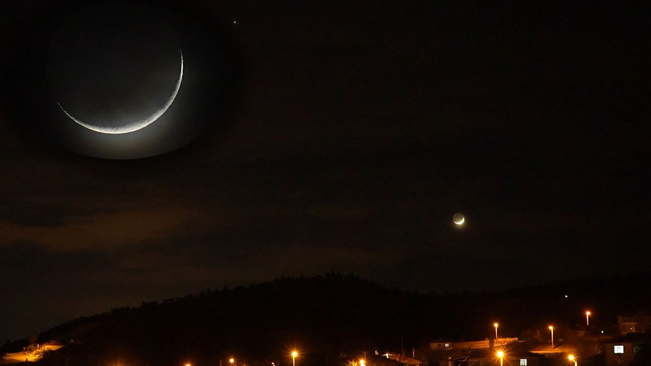 Görüntülerde Ay'ın hilal şeklinde, Venüs'ün ise parlak bir yıldız gibi gökyüzünde yer aldığı görüldü.