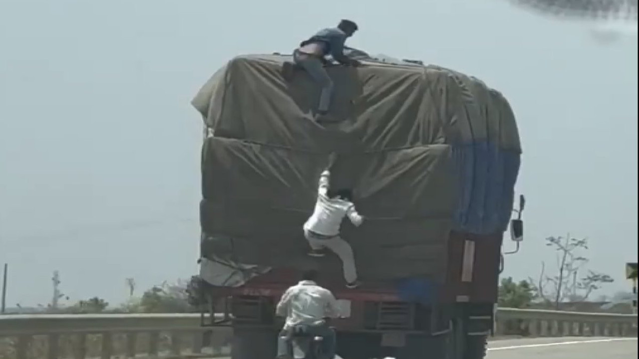 Hindistan'da hırsızlar, hareket halindeki bir tırdan eşyayı çalarak motorları geri binip kaçmayı başardı. Olay, tıra motorla yanaşan hırsızların hızlı bir şekilde tıra tırmandığı bazı eşyaları çaldığı ve ardından tekrar motorlarına binerek uzaklaştıkları anları içeriyor. Bu tehlikeli hırsızlık, hırsızların canlarını tehlikeye atması nedeniyle sosyal medyada büyük tepki topladı.