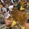 Kutlamanın yapıldığı sokakta binlerce Hindistan cevizi kıran göçmenler birçok kişi tarafından kayda alındı.