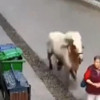 Dünyanın en kalabalık ülkesi Çin'de başıboş bir at, hızını alamayarak kaldırımda yürüyen yayaların üzerine çıktı.
