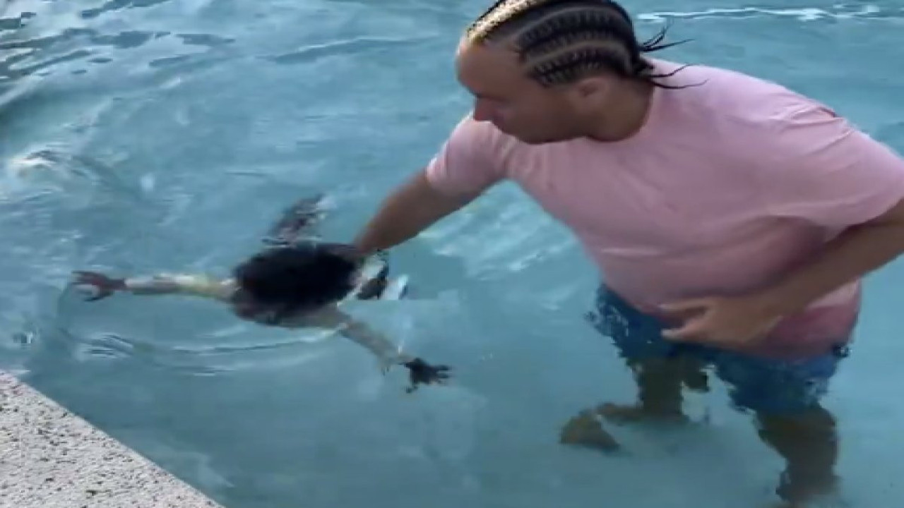 Sosyal medyada paylaşılan bir video, yüzme hocasının 11 aylık bir bebeğe yüzme eğitimi verdiği anları gözler önüne serdi. Videoda, eğitmenin bebeği tutup direkt havuza atması, izleyenlerin büyük şaşkınlık yaşamasına neden oldu.