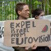 Göstericiler, İsrail’in Eurovision’a katıldığı sürece yarışmayı yayınlamaması çağrısında bulundu.