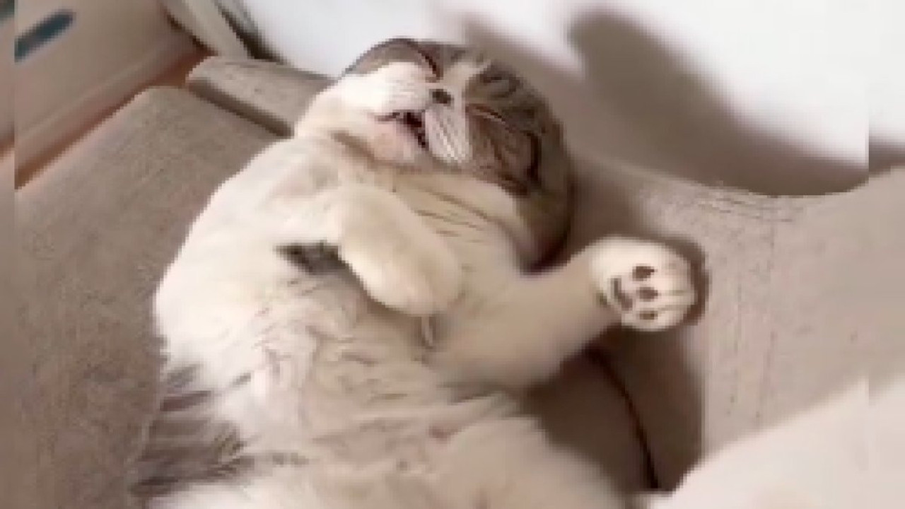Sahibi tarafından horlarken videoya kaydedilen görüntüleri sosyal medyada beğeni topladı