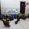 Yapılan aramada bahis parası olarak koyulduğu değerlendirilen 20 bin 450 lira, dövüş süresi ölçülen saat, horozların yaralarının dikilmesinde kullanılan iğne, iplik ve yara bandı, ring adı verilen kafes, 10 iskambil destesi ile 1 gram esrar ele geçirildi.