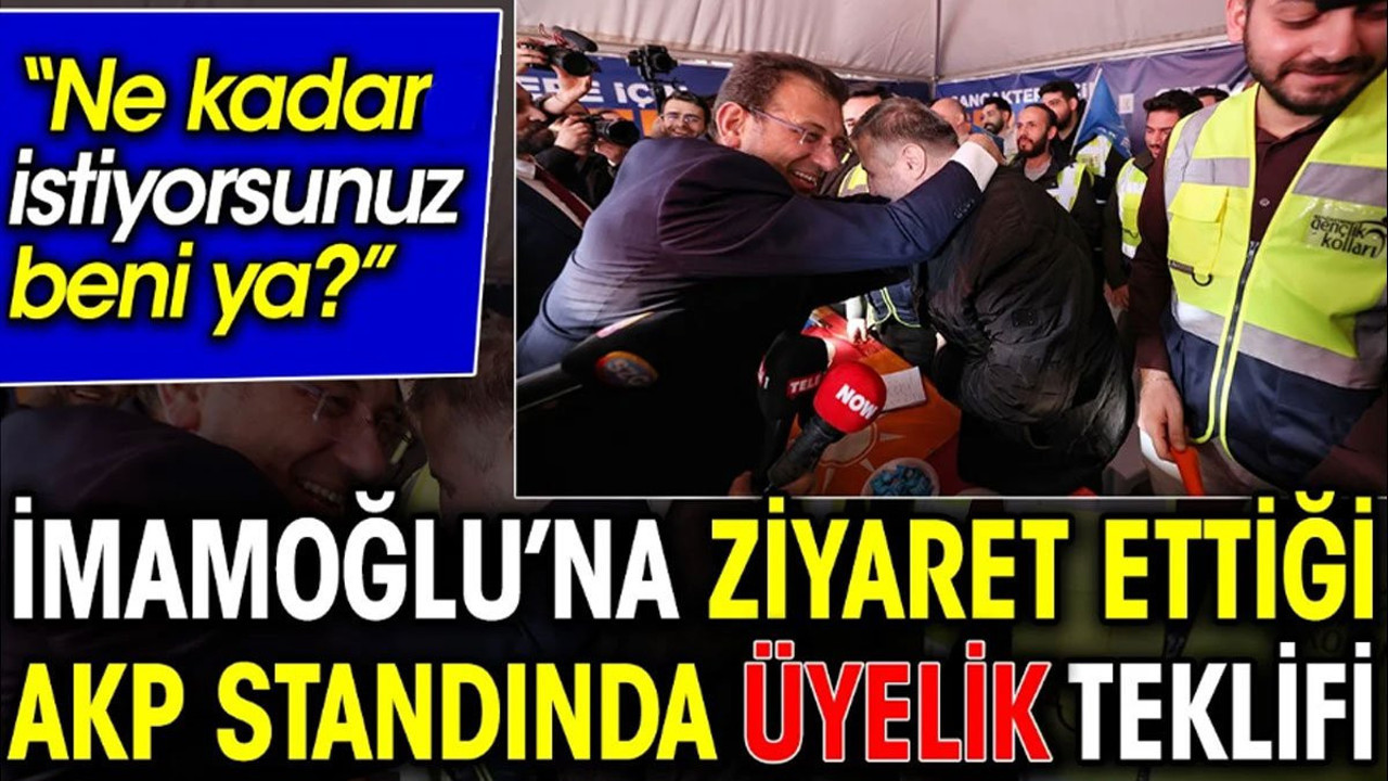 AKP parti görevlilerinin, İmamoğlu’na parti üyeliği teklifinde bulunması komik anlar yaşanmasına neden oldu. İmamoğlu, kendisine yöneltilen teklif üzerine, “Beni mi üye yapacaksın? Ne kadar istiyorsunuz beni ya” ifadesini kullandı ve teklifi yapan AKP’li görevliye sarıldı.