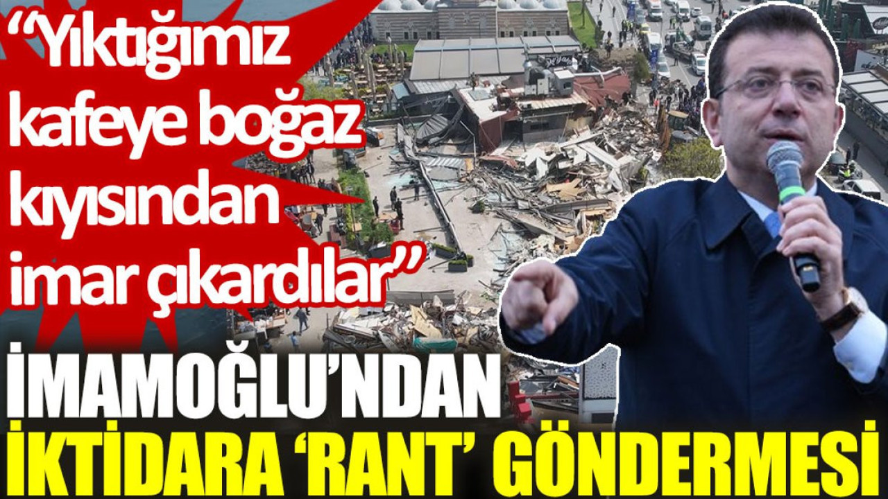İBB Başkanı, “Kuşkonmaz Camii’nin yanındaki kaçak kafeleri yıktık. Yıktığımız kafeye boğaz kıyısından imar çıkardılar bir haftada.” İfadelerini kullandı.