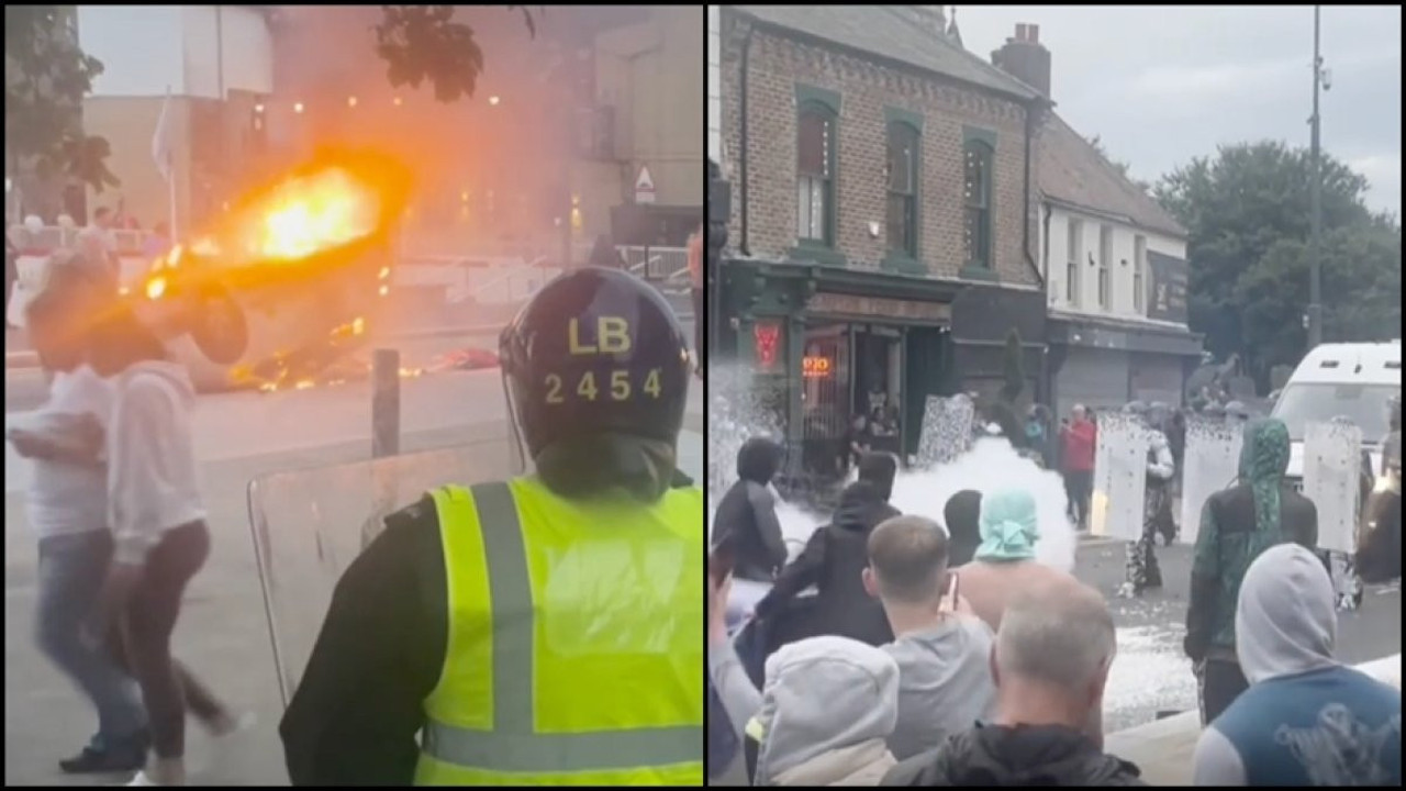 Sunderland'de aşırı sağcı grubun polisle çatışmaya girmesi sırasında, şehir merkezindeki bir polis karakolu da ateşe verildi. Sosyal medyada yayımlanan görüntülerde, polis karakolundan alevlerin yükseldiği görülüyor.