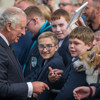 Kral 3. Charles ve eşi Camilla, köylüleri selamlamak için arabalarından inip tezahürat yapan kalabalığa el salladı ve vatandaşların uzattıkları ellerini sıktı.