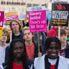 İngiliz hükümetinden ayrımcılık ve ırkçılığa karşı harekete geçmesini isteyen göstericiler, ülkede "mülteci karşıtı yasa tasarısı" olarak gösterilen Uyruk ve Sınırlar Yasa Tasarısının geri çekilmesi çağrısında bulundu.