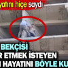 Genç adamın intihar etmeyi planladığı bölümün yan tarafına gelen Yusuf Tekdemir ağzındaki sigara ile bir hamlede yan tarafa geçiş yaptı. Kendi canını hiçe sayan kahraman Tekdemir, intihar etmek isteyen genci olay yerinden uzaklaştırarak aşağıya indirdi.