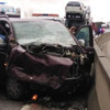 Önünde seyreden Cebrail Oral (37) yönetimindeki 16 AHS 616 plakalı TIR'a arkadan vurarak savrulan ticari araç,beton bariyerlere çarparak durabildi. Çarpmanın etkisiyle hafif ticari aracınsürücüsü Aydın Saykal ile araç içindeki inşaat işçilerinden Ahmet Uğur(42), Resul Öztürk(39), Ali Uğur(37), Harun Bal(38), İbrahim Kır(40), Mahmut Altunbay(41), Ziya Ölmez(36) ve Kadir Ölmez(40) yaralandı.