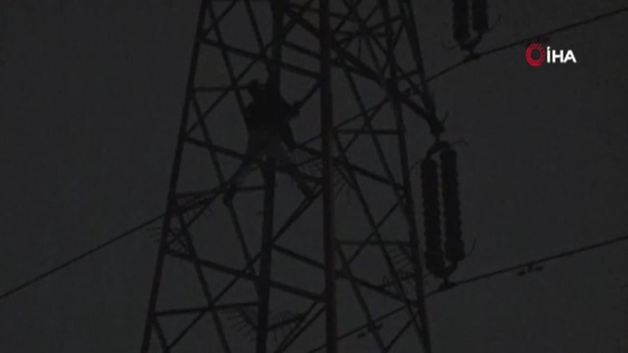 İddiaya göre, 2 sene önce eşinden boşanan Tarık A., bunalıma girerek 50 metrelik yüksek gerilim hattı direğine çıktı.