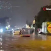Cadde ve sokakların döle döndüğü Necef kentinde ise bir kişinin botla gezdiği anların görüntüsü sosyal medyada paylaşıldı.