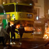 Bıçaklama olayından göçmen bir erkeği sorumlu tutunan grup, bir polis aracını ve tramvayı ateşe verdi ve bazı polis memurlarına saldırdı.