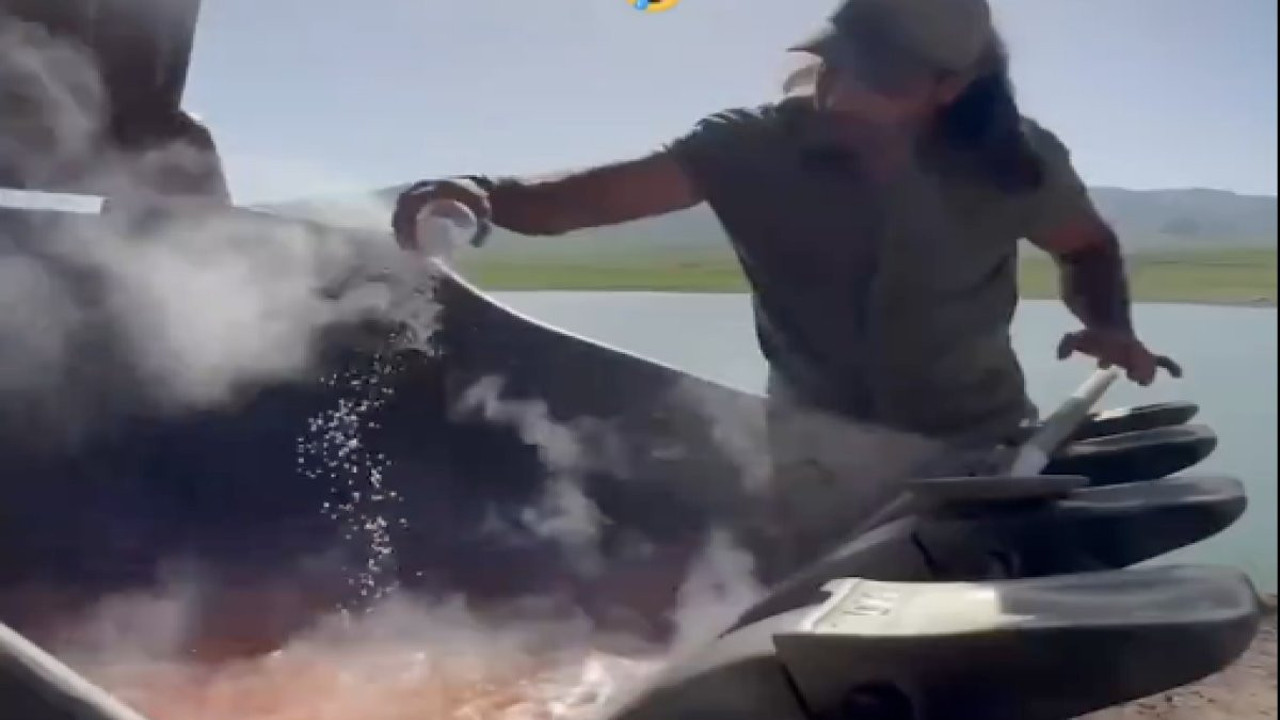 Sosyal medya platformlarında viral olan bir video, iş makinesiyle yemek pişirip dağıtan bir kullanıcının ilginç şovunu gözler önüne seriyor. Videoda, iş makinesinin kepçesinde mangal yapan ve bir yandan etleri çeviren kullanıcının neşeli halleri dikkat çekiyor.