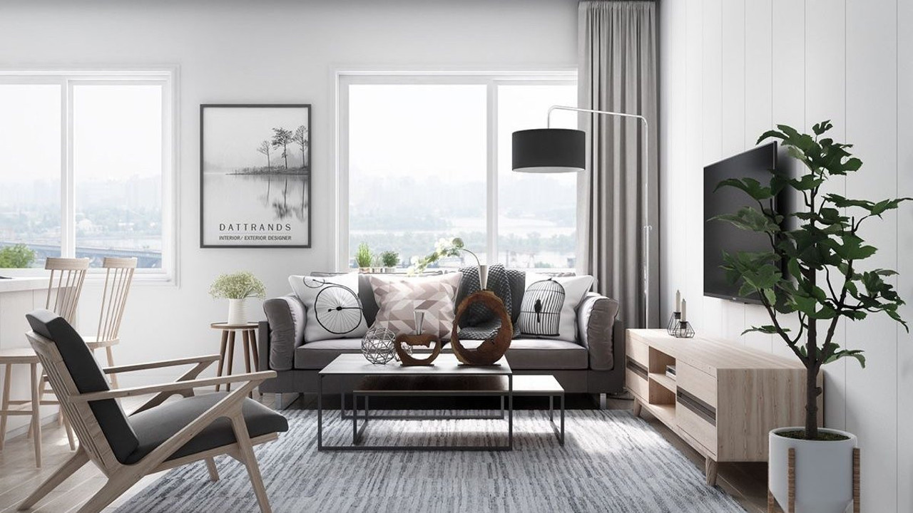 Doğru Renk Paletini Seçin: Beyaz, gri ve diğer nötr renkler, bu tarzın aydınlık ve ferah atmosferini yansıtır.