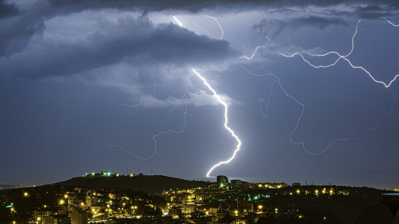 İskenderun Körfezi'nde geceyi aydınlatan şimşekler eşsiz bir görüntü sahneledi.
