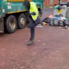 İskoçya’nın Glaslow kentinde çöpleri toplayan temizlik görevlileri konteyneri boşalttığı sırada düşen fareyi fark etti. O esnada kaçmaya çalışan fareyi gören temizlik görevlisi, havaya sıçradı. Uzakta bulunan bir başka temizlik görevlisi ise farenin kendisine doğru yaklaştığını fark edince kaçmaya başladı.