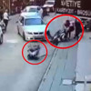 Kaza anı güvenlik kamerasına da anbean yansıdı. Görüntülerde seyir halindeki motosiklet ile yola çıkan otomobilin çarpıştığı, kontrolden çıkan motosikletin kaldırımda yürüyen 2 kişiye çarptığı, sürücünün ise savrulduğu görüldü.