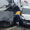 Görüntülerde, TIR''ın kavşaktaki kırmızı ışıkta bekleyen araçlara çarpma anı yer alıyor.