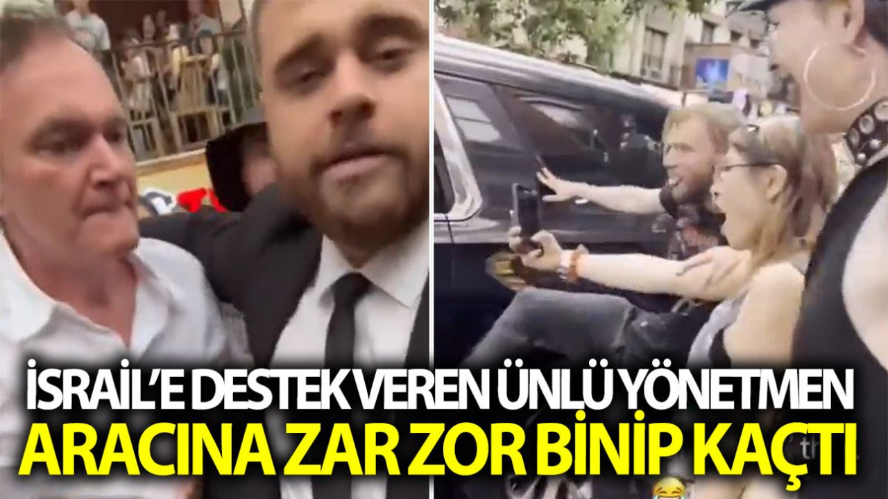 Protestocular, Tarantino’nun aracına saldırırken, yönetmenin yüzündeki panik ifadesi dikkat çekti.