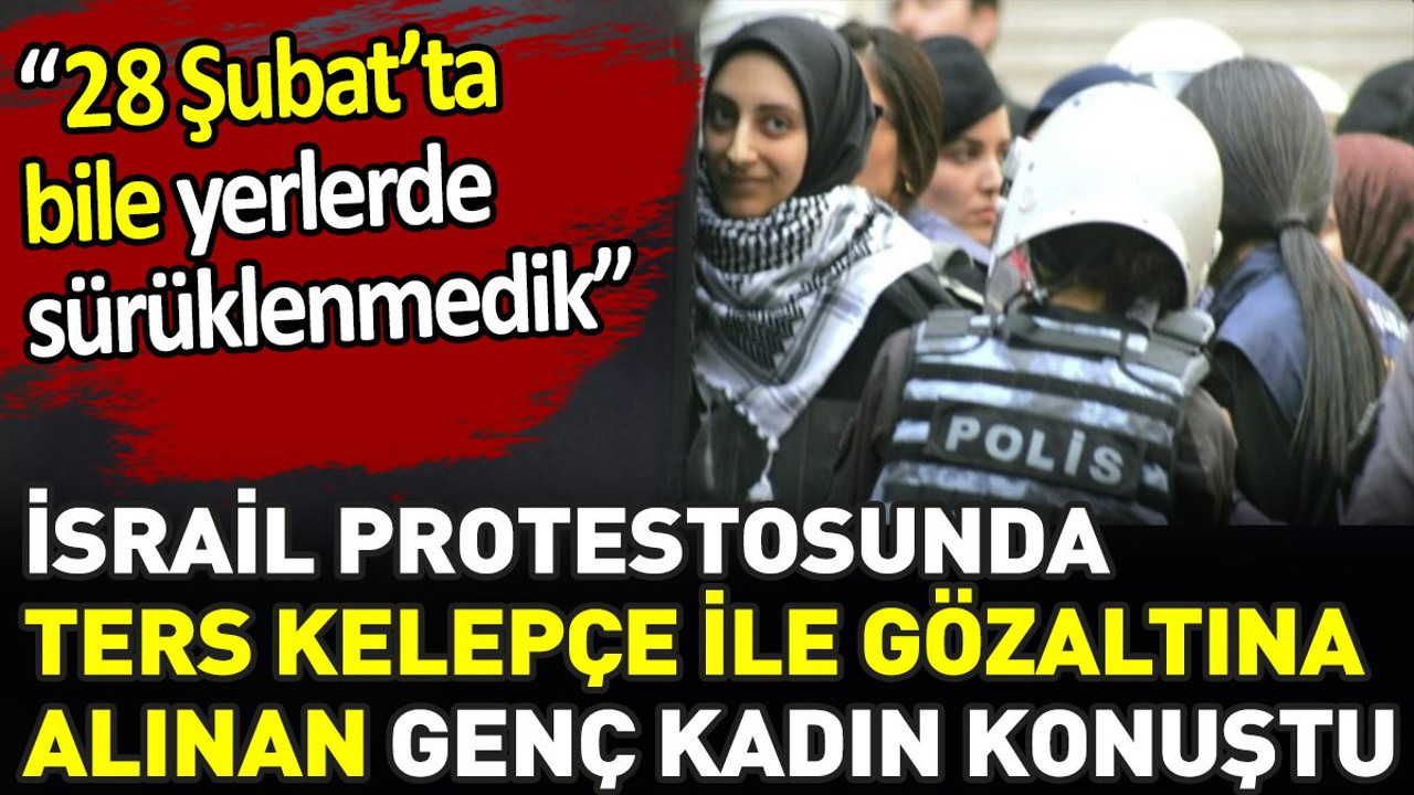 Ters kelepçe ile gözaltına alınana protestoculardan olan Rumeysa Şanlı, sosyal medya üzerinden yaşananlara ilişkin açıklamalarda bulundu. Şanlı, ''İsrail’e ticarete karşı bu harekete katıldım. 28 Şubat'ta bile yerlerde böyle bir mağduriyet yaşamadık. 28 Şubat'ta ki eylemlerde bile yerlerde sürüklenip , tekmelenip, başörtümüz açılmadı” diye konuştu.