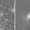 NASA'nın ay gözlem aracı Lunar Reconnaissance Orbiter (LRO) tarafından kaydedilen görüntülerde, Beresheet'in Ay yüzeyinde çakıldığı bölge ve etki alanı yer alıyor.