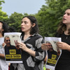ABD'nin başkenti Washington DC'deki İsrail Büyükelçiliği önünde toplanan göstericiler protestolarını gerçekleştirdi.