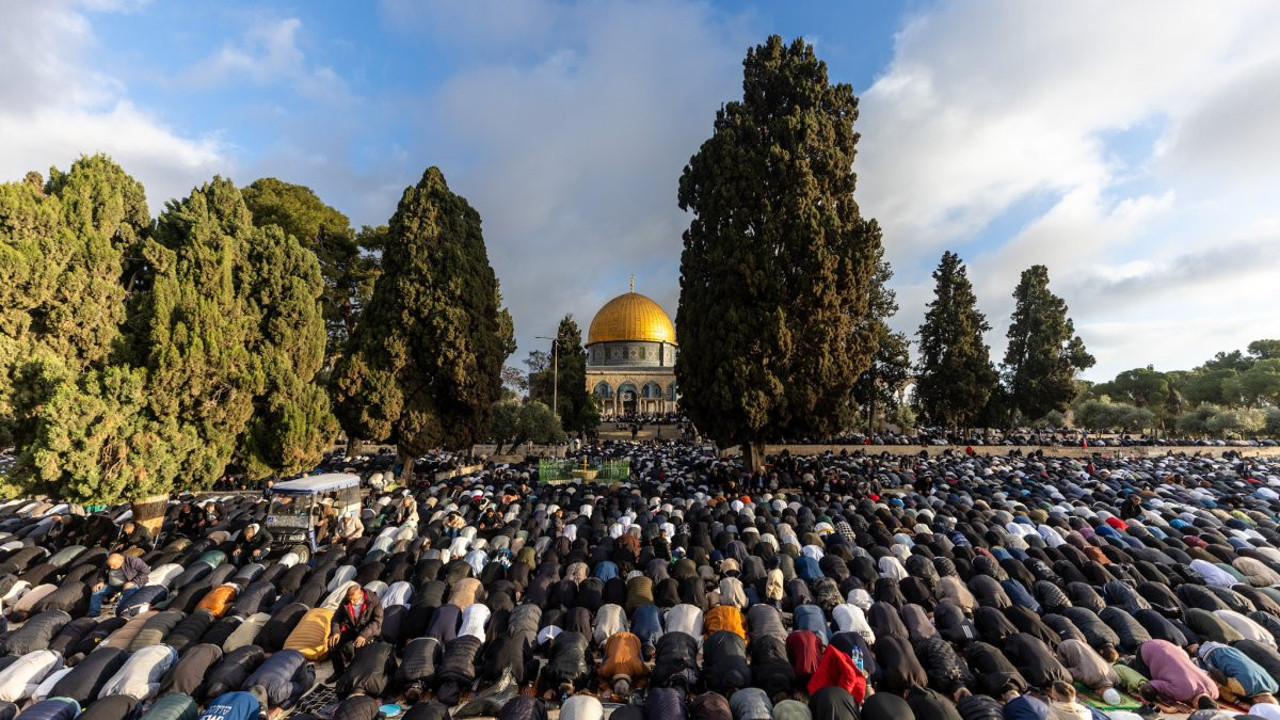 İsrail’in kısıtlamalarına rağmen akın ettiler: 120 Bin Filistinli Mescid-i Aksa’da saf tuttu