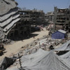 Görgü tanıklarının ifadelerine göre, arama kurtarma ekipleri Nusayrat Mülteci Kampı'nda yıkılan bir binanın enkazından 2 kişinin cansız bedenini çıkardı.