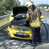 Taksi Şoförü Olcay Özer, "Seyir halindeyken aracın motor kısmından yangın çıktı. Hemen aracımı sağa çektim. Araçtan indim. İtfaiye ekipleri gelerek yangını söndürdüler. Takside müşteri yoktu" dedi.