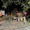 Polisler çevrede güvenlik alırken, itfaiye ekipleri sokağa ve bir kısmı metro inşaatı alanına düşen meşe ağacını elektrikli testere ile keserek kaldırdı.