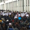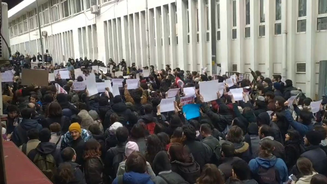 Üniversite kampüsünde toplanan öğrenciler, bu durumu eleştiren sloganlar atarak ve pankartlar taşıyarak protesto düzenledi.