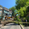Yola devrilen ağacın bir dalı, caddenin karşısındaki 3 katlı binanın çatısına dayandı.