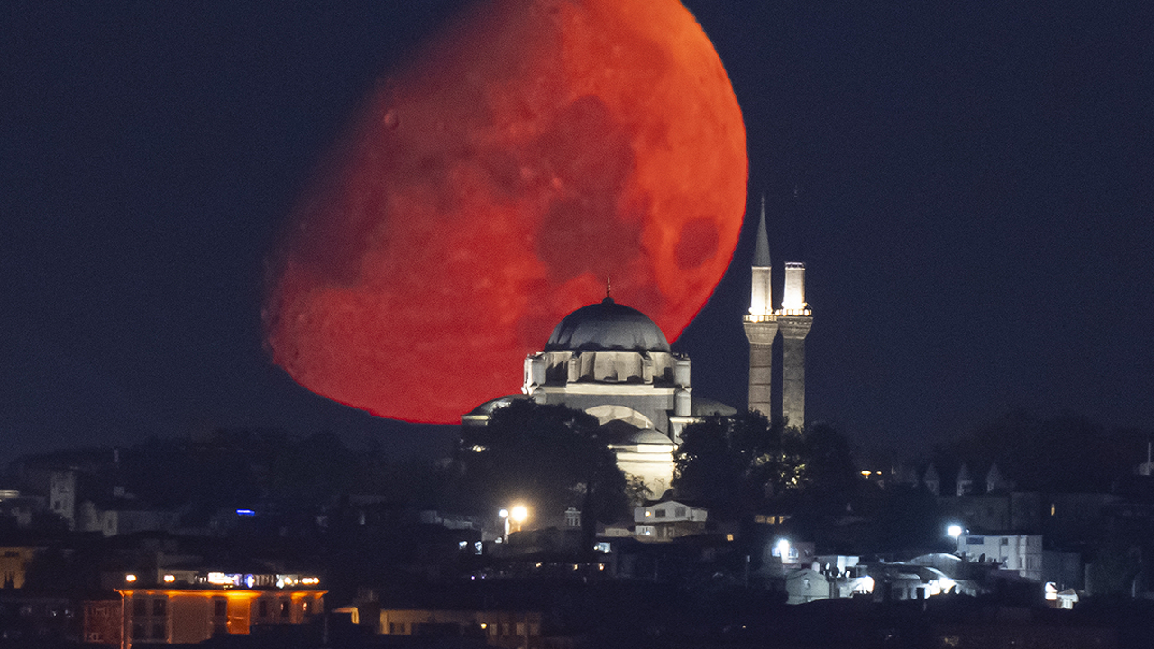 İstanbul'da Ay, Beyazıt Camisi ile birlikte görüntülendi.