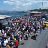 Gemilere binmek isteyen yüzlerce vatandaş uzun kuyruklar oluşturdu. Eminönü'ndeki insan seli havadan çekilen görüntülere yansıdı.