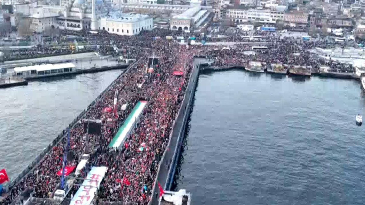 Milli İrade Platformu 308 Sivil Toplum Kuruluşu ile birlikte 'Şehitlerimize Rahmet, Filistin'e Destek, İsrail'e Lanet' yürüyüşü düzenledi. Yürüyüşe sabah namazından sonra Ayasofya Camii, Sultanahmet Camii, Yeni Camii ve Süleymaniye Camii'den kortejler hareket etti. Köprüye çıkan yollar trafiğe kapatıldığı için katılımcılardan bazıları yürüyerek bazıları da deniz yoluyla alana ulaştı. Vatandaşlar sloganlar atıp, tekbir getirdi. Binlerce kişi Türk bayrağı, Filistin bayrağı, İsrail'i protesto eden pankartlarla Galata Köprüsü'ne akın etti.