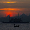 İstanbul'da gün batımı, Sultanahmet Camisi ve Ayasofya-Cami ile güzel görüntü oluşturdu.