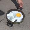Güneşin altında tavada yumurta pişiren Erkan Urtenu,“Sıcaklık 42 dereceyi buldu. Bayağı sıcak. Tavada yumurtamız da pişti. Allah yardımcımız olsun" dedi.