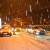Araçlar kar yağışı nedeniyle trafikte ilerlemekte güçlük çekti.