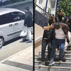Şüphelilerin bir olayda yürürken otomobille yanına yaklaştıkları turisti sözde kontrol ederken güvenlik kamerasına yakalandığı belirlendi.