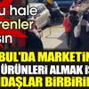 İstanbul’un İkitelli ilçesinde bir zincir market çalışanı tarihi geçmiş ya da geçmek üzere olan ürünleri çöpe attı.