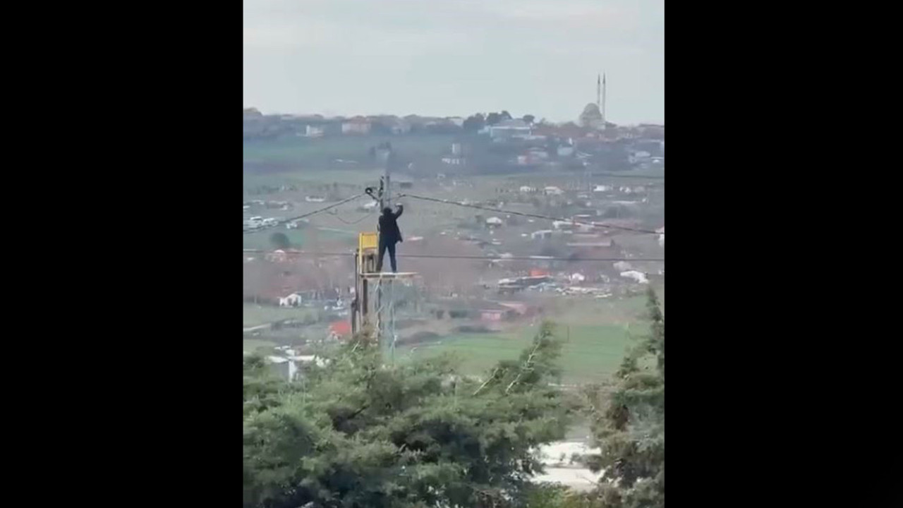 İstanbul'un Arnavutköy ilçesinde bir şahıs, yetersiz güç geldiğini düşündüğü bir nokta nedeniyle elektrik kablolarının arızalı olduğunu düşündü. Forklift yardımıyla tırmandığı elektrik kablolarını onarmaya çalıştı. İlginç anlar cep telefonu kamerasıyla böyle görüntülendi.