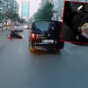 Motosiklet sürücüsü arkadan gelen minibüsün altında kalmaktan son anda kurtuldu. Motosiklet, sürücüsüz şekilde bir süre sürüklenerek durdu. O anlar arkadan gelen bir motosikletlinin kask kamerasına yansıdı.