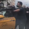 Sürücü, taksinin kapısını açıp şoför ile tartışmaya başladı.