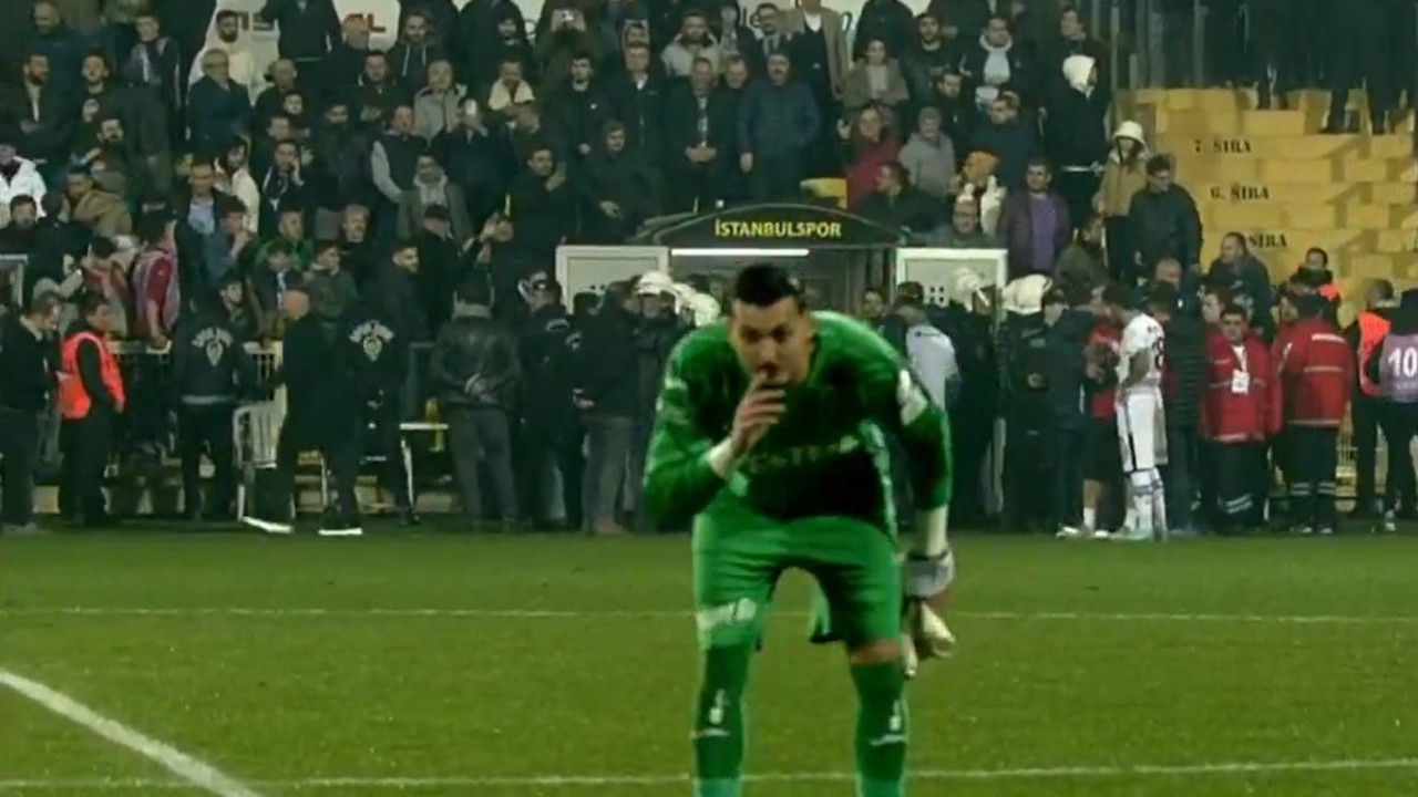 Uğurcan Çakır, İstanbulspor'un sahadan çekilmesi sonrası Trabzonspor taraftarının olduğu deplasman tribününe giderek taraftara üçlü çektirdi.
