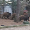 O sırada, domuzlardan biri kendilerine havlamaya devam eden köpeklere doğru koştu. O anlar, bir vatandaş tarafından cep telefonuyla görüntülendi.