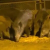 Hasdal'da askeri kışlanın bulunduğu araziden geçerek tel çitleri aşan çok sayıda yaban domuzu İstanbul Yeni Havalimanı yolu üzerine inerek yol kenarında bulunan ve vatandaşlar tarafından sokak hayvanlarının beslenmesi için bırakılan yemekleri yerken görüntülendi.