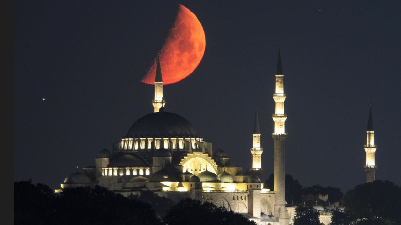 Süleymaniye ve Fatih Camisi...Bu muhteşem iki eseri süsleyen 'Ay'. Anadolu Ajansı'ndan İsa Terli'nin objektifine İstanbul ve üç camiyle birlikte Ay böyle yansıdı.